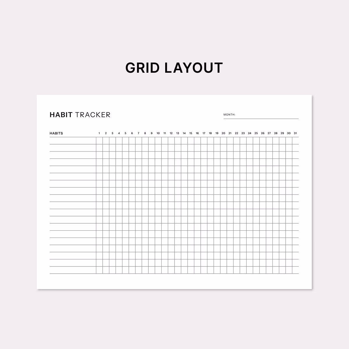 Whether you’re working on fitness, mindfulness, reading, productivity, or personal development, this monthly layout keeps everything visible at a glance. The two layout options included are intentionally uncluttered - no distractions, no unnecessary graphics - just a straightforward system that makes staying on track easier.